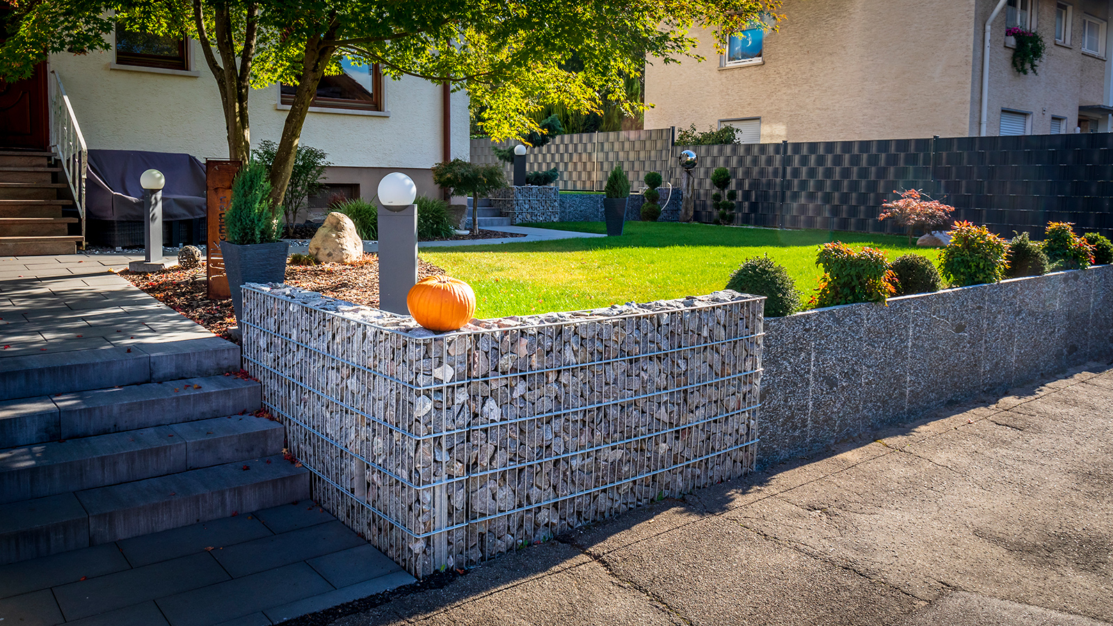 Gabionenzaun | Natursteinmauer Gartenbau / Bepflanzung / Naturstein